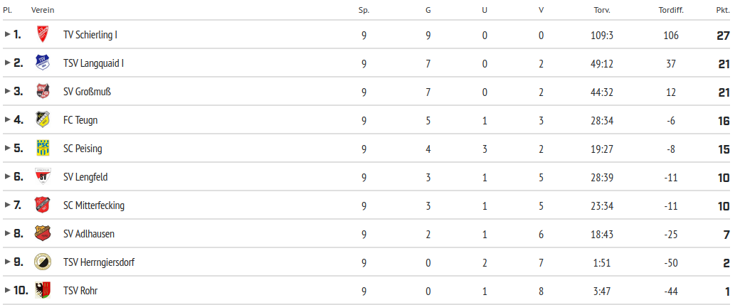 Abschlusstabellen der E1-Junioren