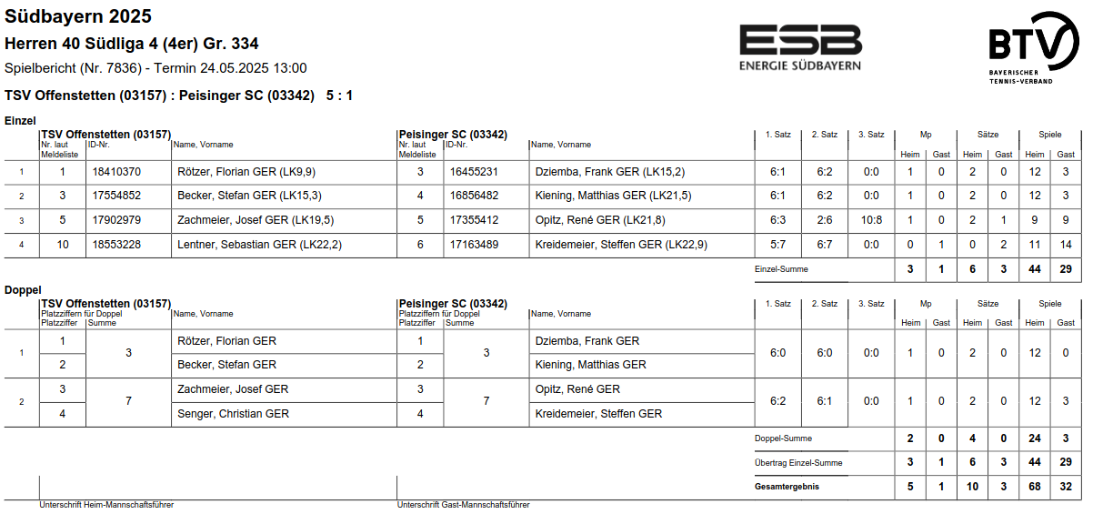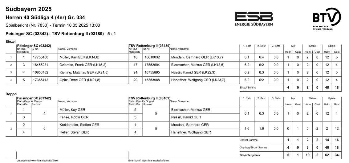| TC Blau-Weiß Mühlhausen | MP | SÄ | SP | Peisinger SC | |||