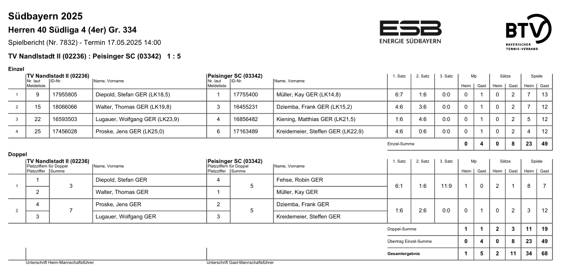 | Zusammen | 1:3 | 2:6 | 25:43 | ||||