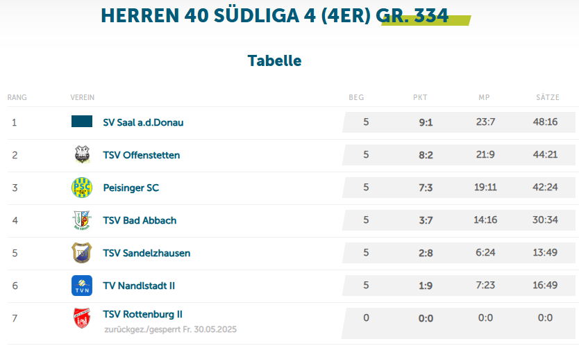 | TSV Sandelzhausen | MP | SÄ | SP | Peisinger SC | |||