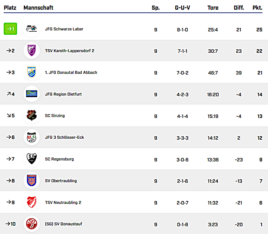 2022/2023 Kreisliga Regensburg West Hinrunde (JFG Donautal Bad Abbach)
